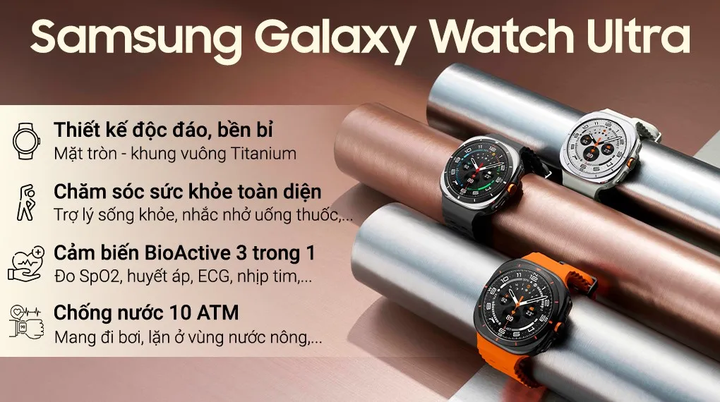 Galaxy Watch Ultra 2025 là bản nâng cấp đáng giá với những cải tiến về bộ xử lý và bộ nhớ trong, mang lại hiệu năng vượt trội và khả năng lưu trữ lớn hơn. Thiết kế vẫn giữ nguyên nét lai độc đáo, vật liệu Titanium và kính Sapphire, cùng độ bền chuẩn quân đội. Đây là một trong những smartwatch toàn diện nhất cho những ai yêu thích thể thao, khám phá và công nghệ đỉnh cao.