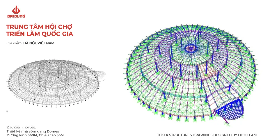 Mái vòm kết cấu thép ghi dấu kỷ lục của doanh nghiệp Việt – Đại Dũng Group tự hào là nhà thầu kết cấu thép chính góp phần dựng xây công trình mang tính biểu tượng – Trung tâm Triển lãm Việt Nam – VEC Hà Nội.