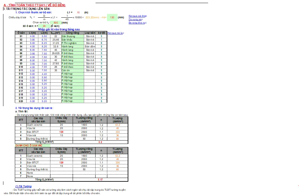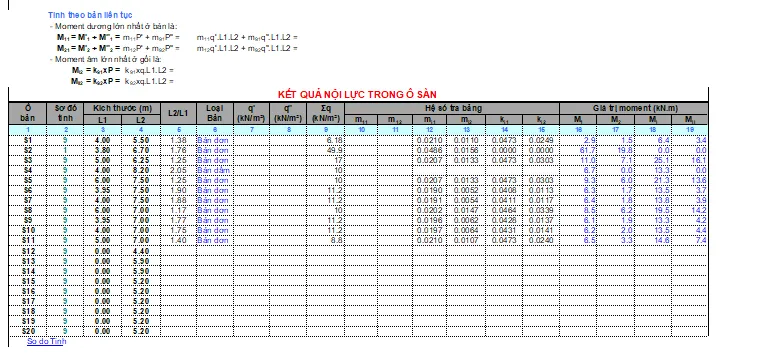 Với sự thôi thúc mong muốn tối ưu hóa quy trình, các kỹ sư đã dành nhiều thời gian nghiên cứu tài liệu, mày mò và cuối cùng tạo ra những bảng tính Excel có khả năng xử lý đa dạng các trường hợp. Một bảng tính sơ bộ có thể đáp ứng đầy đủ các chức năng cho khoảng 25 loại ô sàn khác nhau, với các kích thước và tải trọng biến đổi. Quan trọng hơn, nó tích hợp cả tính toán và kiểm tra cho cả TTGH I và TTGH II. Cảm giác hạnh phúc và tự hào khi lần đầu tiên áp dụng bảng tính này vào một công trình thực tế là một kỷ niệm đáng nhớ, đánh dấu sự trưởng thành trong sự nghiệp thiết kế.