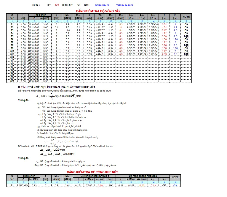 Thậm chí, việc tính toán này còn phân chia theo các trạng thái giới hạn. Với Trạng thái giới hạn I (TTGH I – kiểm tra cường độ và ổn định), mọi thứ có thể gói gọn trong một bảng tính tương đối phức tạp. Tuy nhiên, đối với Trạng thái giới hạn II (TTGH II – kiểm tra võng, nứt), việc thực hiện trong cùng một bảng tính phức tạp thường rất hiếm khi được thực hiện thủ công.