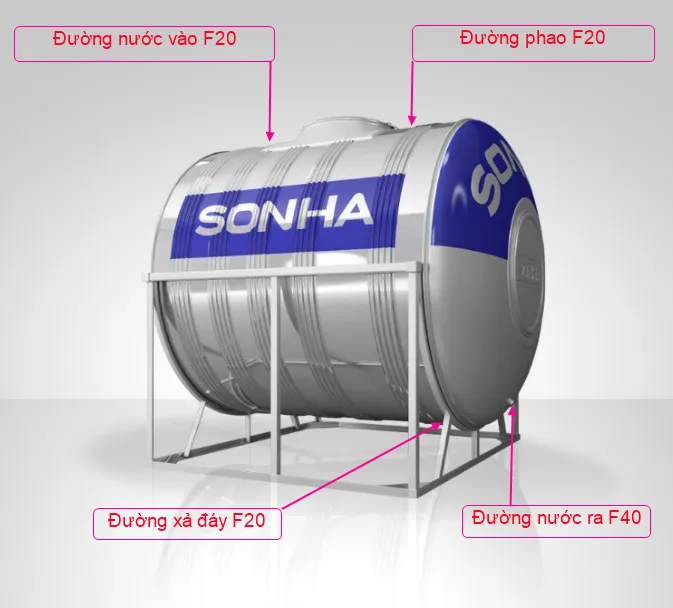 Sơ đồ cấu tạo chi tiết của bồn nước inox ngang Sơn Hà.