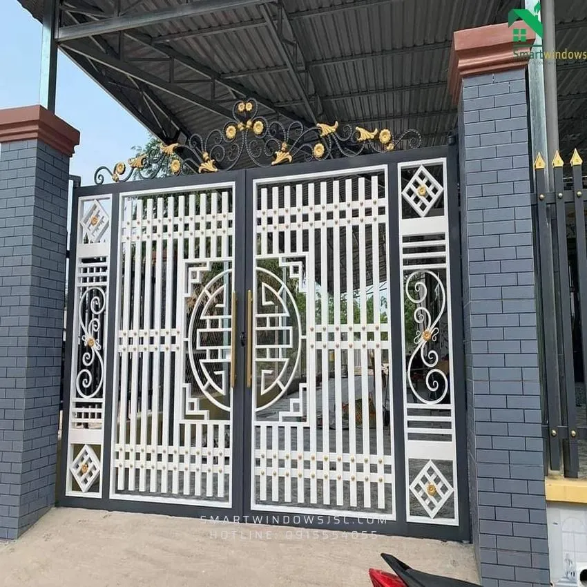 Sự sáng tạo không giới hạn trong thiết kế cổng sắt sơn tĩnh điện. Mẫu cổng này là minh chứng cho việc kết hợp hài hòa giữa các họa tiết nghệ thuật, tạo nên một tổng thể độc đáo và đầy ấn tượng. Nó không chỉ là một cánh cổng mà còn là một tác phẩm trang trí nghệ thuật cho ngôi nhà của bạn.
