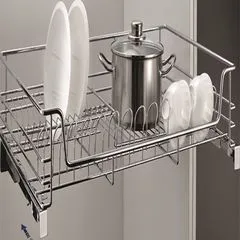 Thiết kế ray trượt âm tủ là một điểm nhấn quan trọng, mang lại trải nghiệm sử dụng vượt trội. Chỉ với một thao tác kéo nhẹ nhàng, giá đựng sẽ tự động trượt ra ngoài, giúp người dùng dễ dàng lấy hoặc cất đồ mà không tốn nhiều sức lực. Cơ chế này đặc biệt hữu ích khi cất giữ các vật dụng nặng hoặc trong các tủ bếp có không gian hạn chế, giảm thiểu tối đa sự bất tiện.