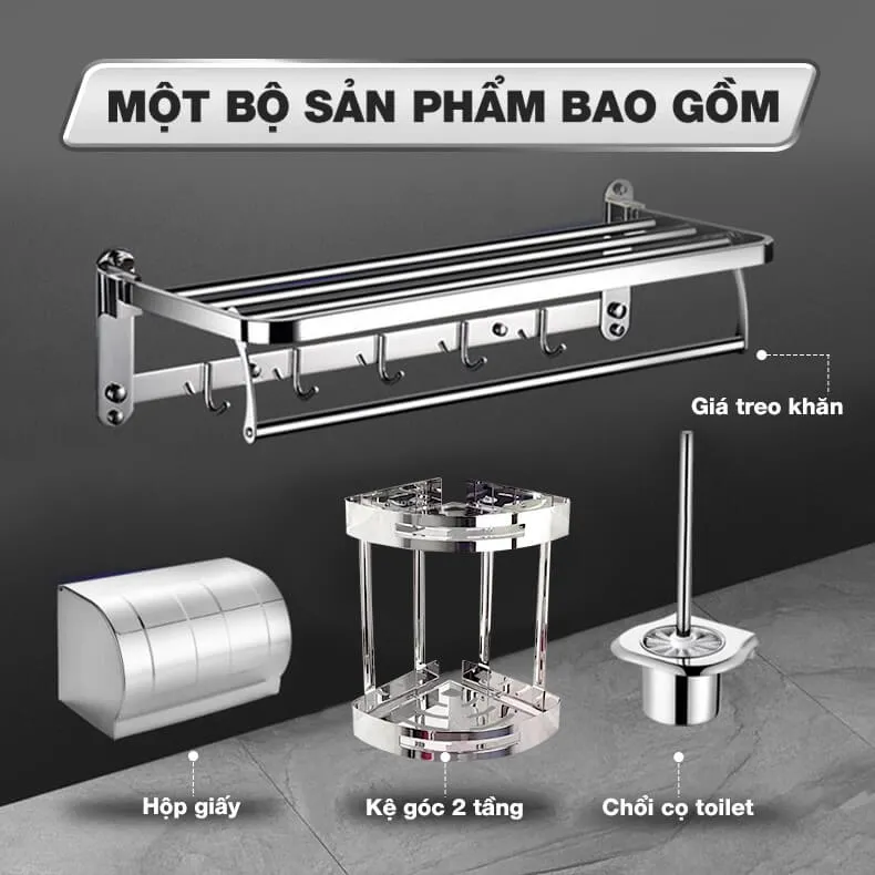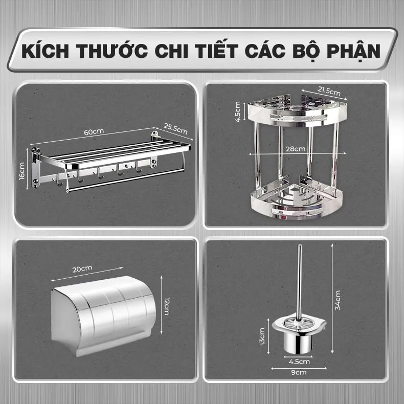Bộ phụ kiện phòng tắm inox 304 cao cấp tạo nên sự đồng bộ hoàn hảo