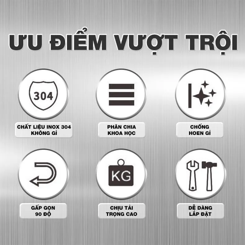 Cơ chế này đòi hỏi sự chính xác tuyệt đối trong gia công cơ khí. Các khớp nối phải đảm bảo độ khít để không gây ra tiếng động khi vận hành nhưng vẫn đủ trơn tru để người dùng thao tác bằng một tay. Việc sử dụng 100% phôi inox 304 đúc đặc ở các vị trí chịu lực giúp sản phẩm chịu được tải trọng lên đến 15-20kg mà không biến dạng, cho phép treo cùng lúc nhiều khăn tắm ướt và áo choàng tắm nặng.