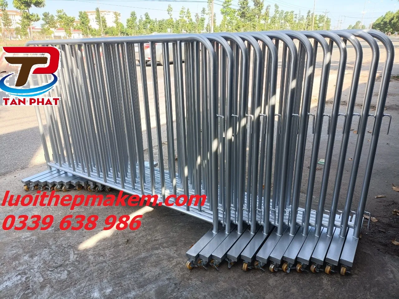 - Bánh xe di chuyển: Một số mẫu hàng rào được trang bị thêm các bánh xe chắc chắn, cho phép di chuyển hàng rào một cách dễ dàng từ vị trí này sang vị trí khác mà không cần nhiều sức lực. Điều này cực kỳ hữu ích trong các sự kiện hoặc công trường có nhu cầu thay đổi bố cục thường xuyên.