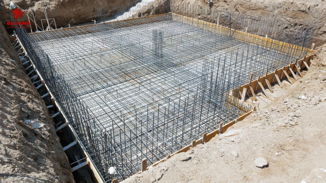 Bê tông móng phải đạt mác (grade) từ M200 đến M250. Trong môi trường xâm thực hoặc đất nhiễm mặn, chủ đầu tư nên sử dụng xi măng bền sunfat để bảo vệ cốt thép bên trong khỏi bị ăn mòn theo thời gian.