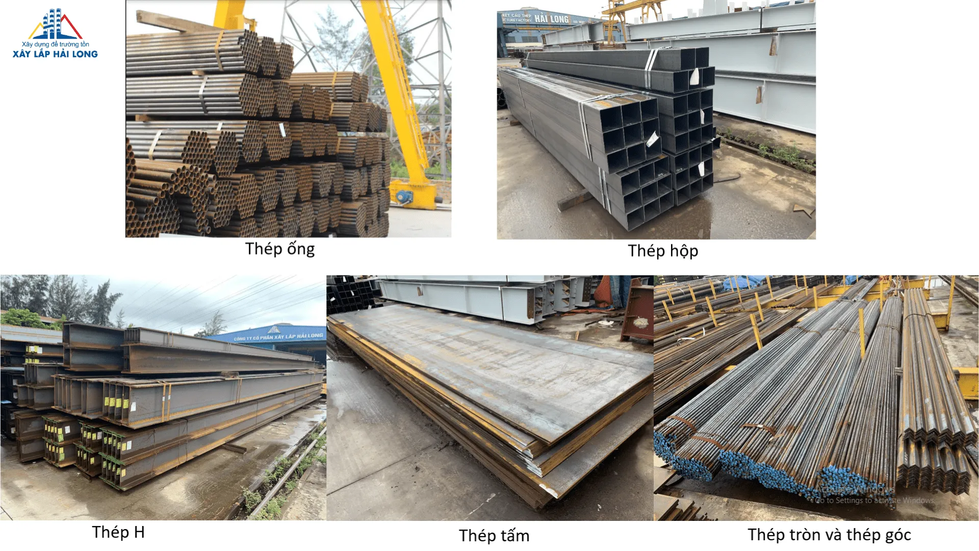 - Thép hình U, L, ống: Các loại thép hình khác với mặt cắt chữ U, L hoặc dạng ống cũng được sử dụng cho các bộ phận chịu lực hoặc kết cấu phụ.