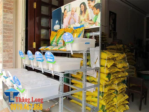 - Kệ sắt trưng bày gạo: Bảo quản và trưng bày các loại nông sản.