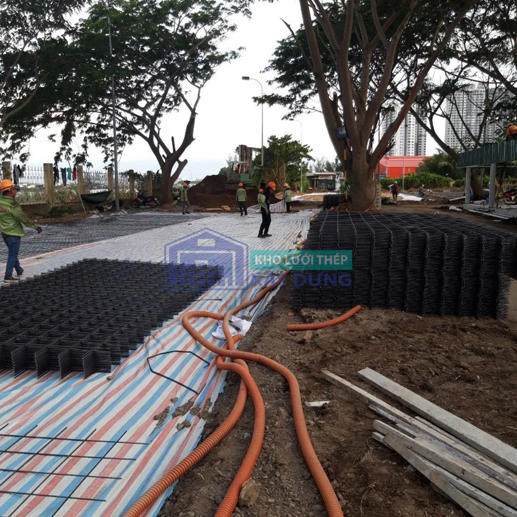 • Thi Công Nhanh Chóng và Thuận Tiện: Các tấm lưới thép hàn được sản xuất sẵn với kích thước chuẩn, dễ dàng vận chuyển và lắp đặt tại công trường. Chỉ cần trải lưới và cố định, tiết kiệm đáng kể thời gian và công sức so với việc cắt, uốn và buộc từng thanh thép riêng lẻ.